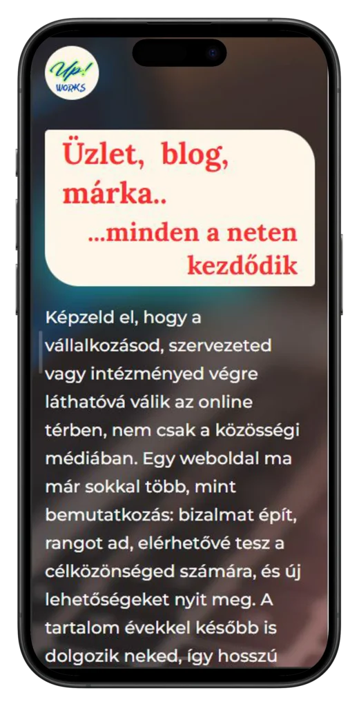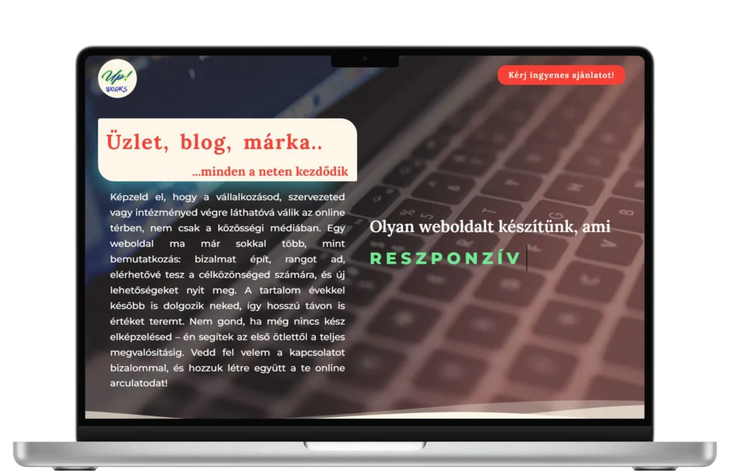 Ez alap! Ma már minden eszközön hibátlanul kell működni – ezt nálam nem kell külön kérni. Ha profi megjelenést akarsz, nálam jó helyen jársz. Ha most laptopon böngészel, akkor nézd meg ezt az oldalat mobilon vagy tableten.